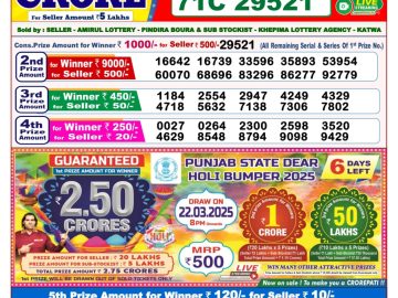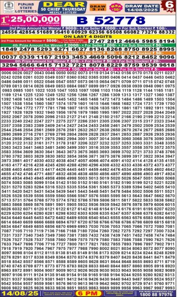 पंजाब 50 लाटरी का शाम 6 बजे का रिज़ल्ट दिनांक 14.12.25