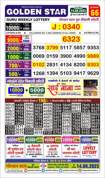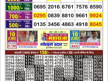 गोल्डन लाटरी का रात 9 बजे का रिज़ल्ट दिनांक 14.12.25