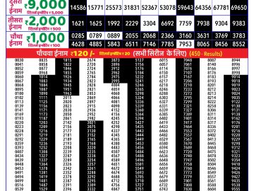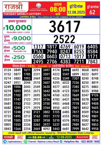 राजश्री लाटरी का दोपहर 1 बजे का रिज़ल्ट दिनांक 12.12.25