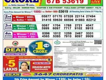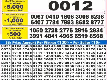 डिअर लाटरी का 1 बजे का रिज़ल्ट दिनांक 12.12.25