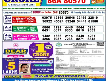 डिअर लाटरी का 1 बजे का रिज़ल्ट दिनांक 15.12.25