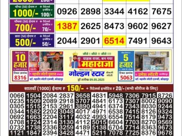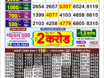 गोल्डन लाटरी का रात 9 बजे का रिज़ल्ट दिनांक 13.12.25