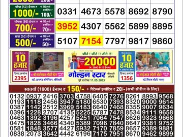 गोल्डन लाटरी का रात 9 बजे का रिज़ल्ट दिनांक 11.12.25