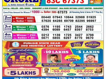 पंजाब 50 लाटरी का शाम 6 बजे का रिज़ल्ट दिनांक 11.12.25