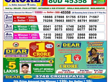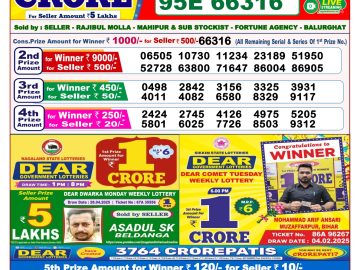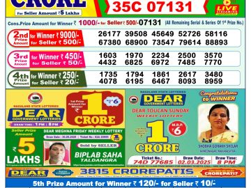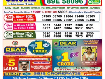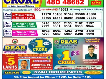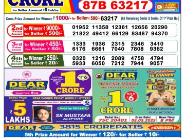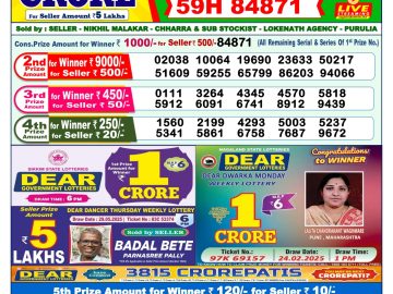 डिअर लाटरी का 1 बजे का रिज़ल्ट दिनांक 11.12.25