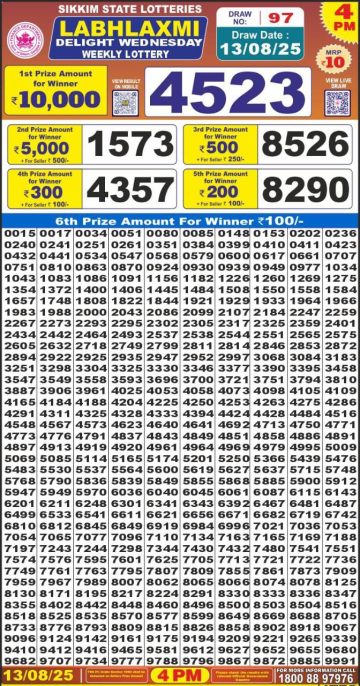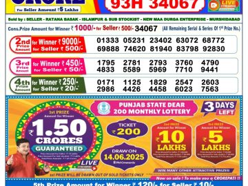 ਅੱਜ ਦੇ ਲਾਟਰੀ ਰਿਜ਼ਲਟ