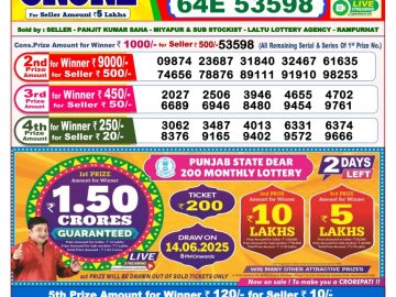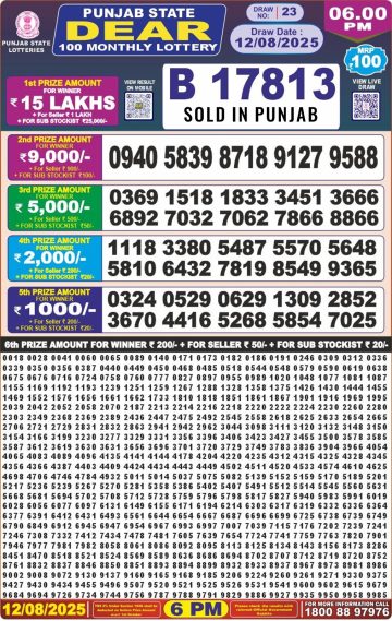 पंजाब 50 लाटरी का शाम 6 बजे का रिज़ल्ट दिनांक 13.12.25