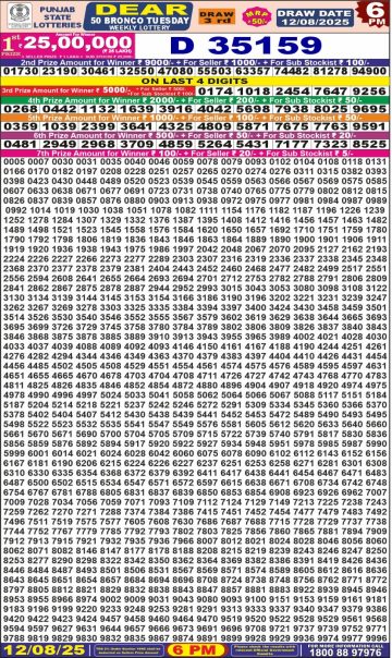 पंजाब 50 लाटरी का शाम 6 बजे का रिज़ल्ट दिनांक 12.12.25