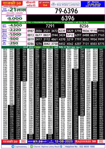 राजश्री 50 लाटरी का रात 7:30 बजे का रिज़ल्ट दिनांक 12.12.25