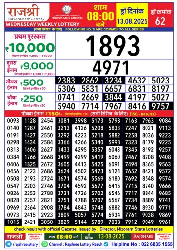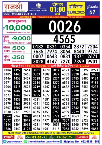 राजश्री लाटरी का दोपहर 1 बजे का रिज़ल्ट दिनांक 13.12.25