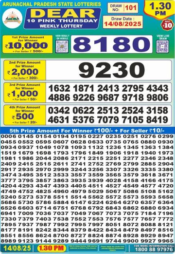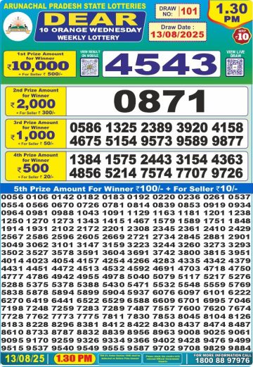 डिअर लाटरी का रात 8 बजे का रिज़ल्ट दिनांक 13.12.25