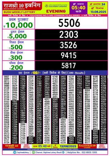 राजश्री 10 लाटरी का का शाम 5.40 बजे का रिज़ल्ट दिनांक 13.12.25