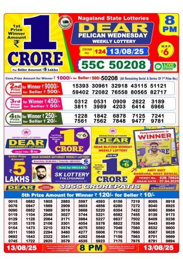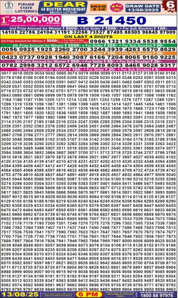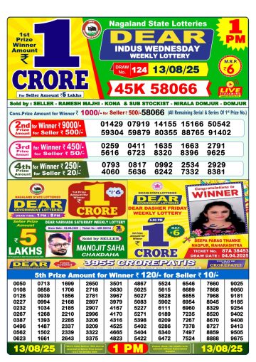 डिअर लाटरी का 1 बजे का रिज़ल्ट दिनांक 13.12.25