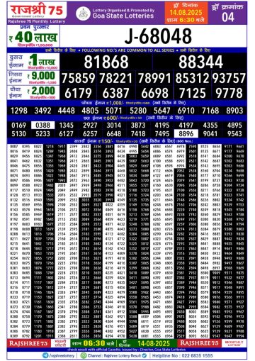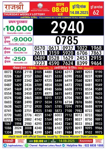 राजश्री लाटरी का दोपहर 1 बजे का रिज़ल्ट दिनांक 14.12.25