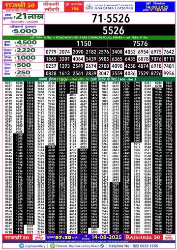 राजश्री 50 लाटरी का रात 7:30 बजे का रिज़ल्ट दिनांक 14.12.25