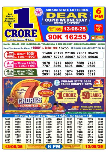 डिअर लाटरी का शाम 6 बजे का रिज़ल्ट दिनांक  13.12.25