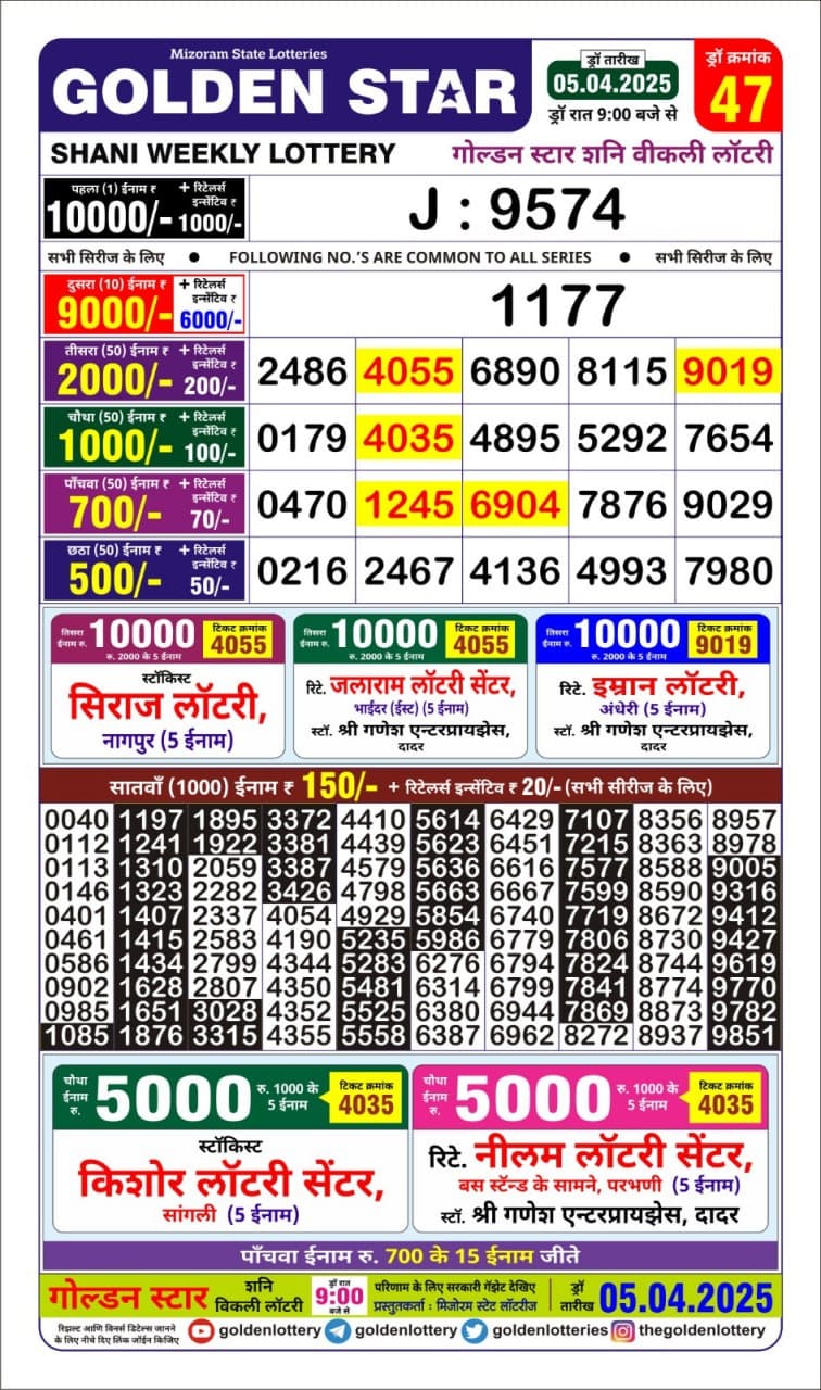 गोल्डन लाटरी का रात 9 बजे का रिज़ल्ट दिनांक 16.11.25