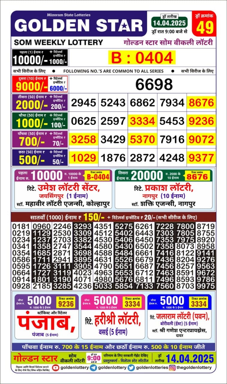 गोल्डन लाटरी का रात 9 बजे का रिज़ल्ट दिनांक 28.11.25