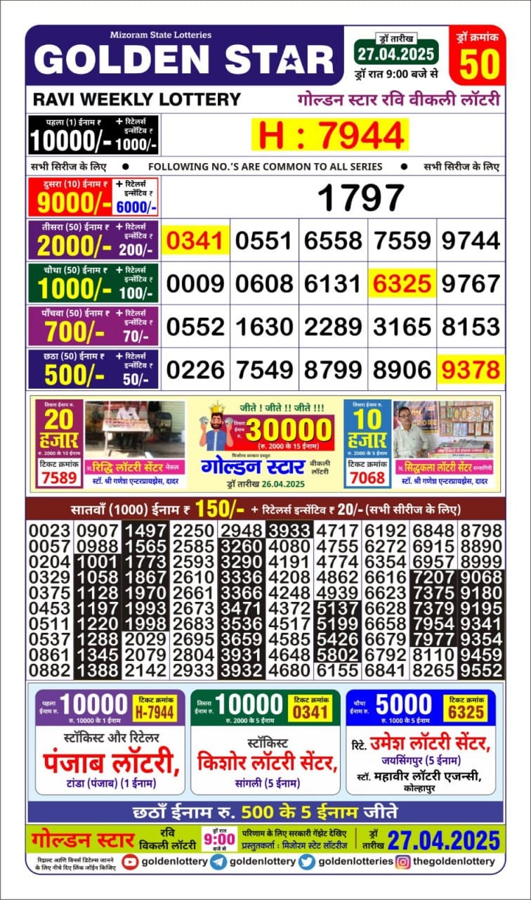 Nagaland State Lotteries was established in the year 1972 under the supervision of the Finance Department to generate a dependable source of revenue for the State Government. Nagaland State Lottery is held every day of the week at three different times of the day, Morning, Day, and Evening. Every day, the lottery is held under a different name with some difference in the prize money with the top prize worth ₹1 Crore (including Super Prize amount). The daily lotteries hosted by Nagaland State include Dear Morning Lottery, Dear Day Lottery, and Dear Evening Lottery which costs 6 Rupees for each ticket.