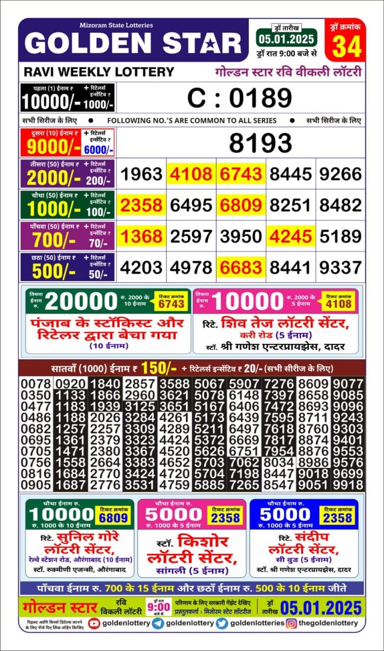 गोल्डन लाटरी का रात 9 बजे का रिज़ल्ट दिनांक 24.8.25