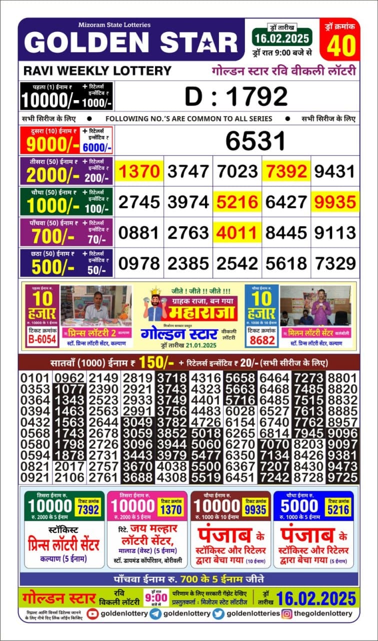 गोल्डन लाटरी का रात 9 बजे का रिज़ल्ट दिनांक 28.9.25