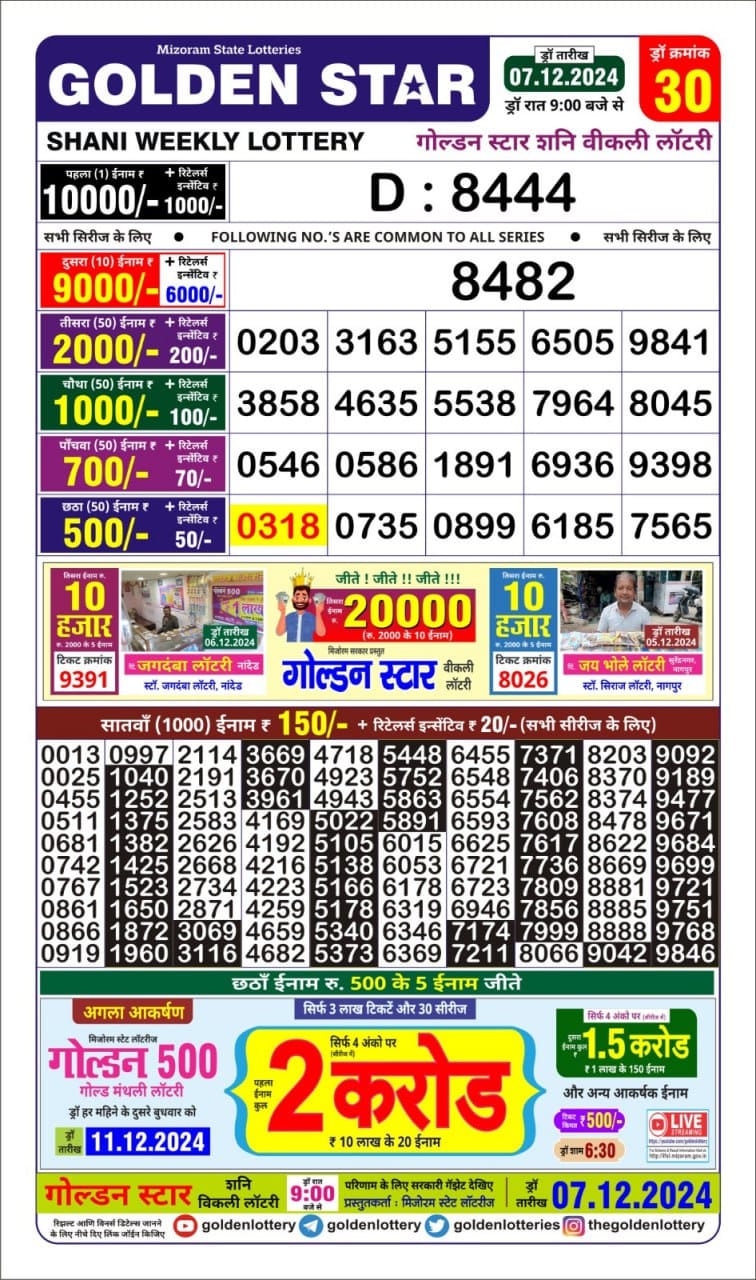 गोल्डन लाटरी का रात 9 बजे का रिज़ल्ट दिनांक 22.7.25