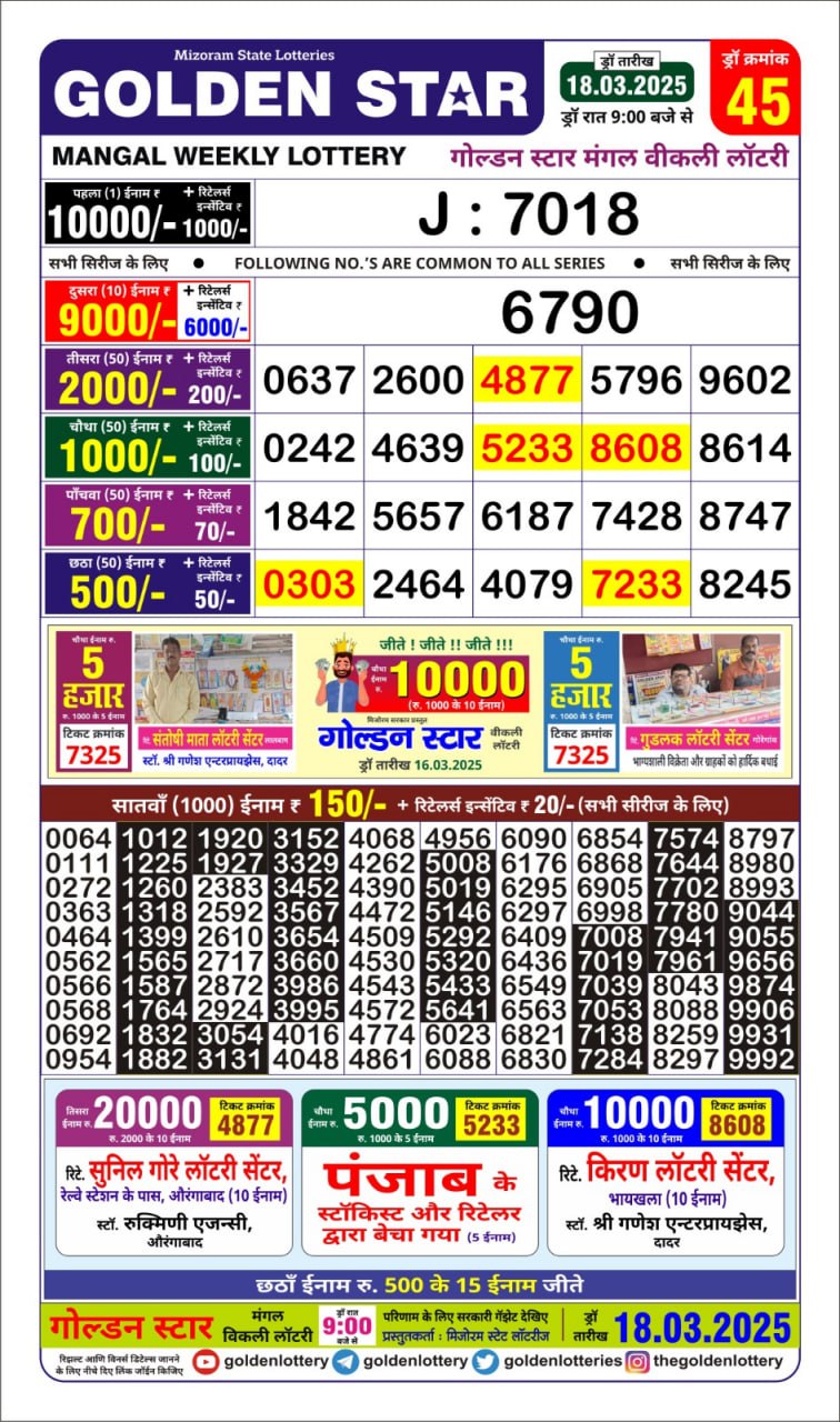 गोल्डन लाटरी का रात 9 बजे का रिज़ल्ट दिनांक 30.10.25