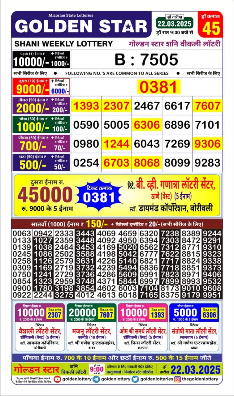 गोल्डन लाटरी का रात 9 बजे का रिज़ल्ट दिनांक 02.11.25