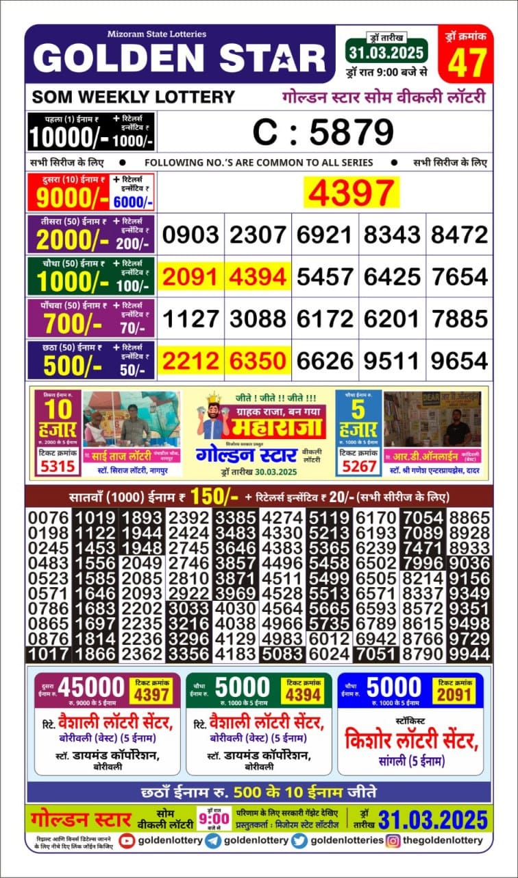 गोल्डन लाटरी का रात 9 बजे का रिज़ल्ट दिनांक 11.11.25