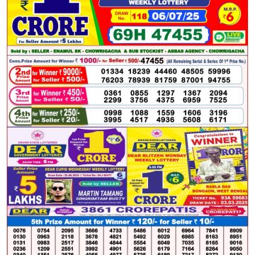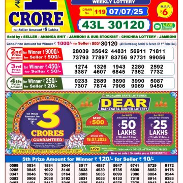 Nagaland State Lotteries was established in the year 1972 under the supervision of the Finance Department to generate a dependable source of revenue for the State Government. Nagaland State Lottery is held every day of the week at three different times of the day, Morning, Day, and Evening. Every day, the lottery is held under a different name with some difference in the prize money with the top prize worth ₹1 Crore (including Super Prize amount). The daily lotteries hosted by Nagaland State include Dear Morning Lottery, Dear Day Lottery, and Dear Evening Lottery which costs 6 Rupees for each ticket.