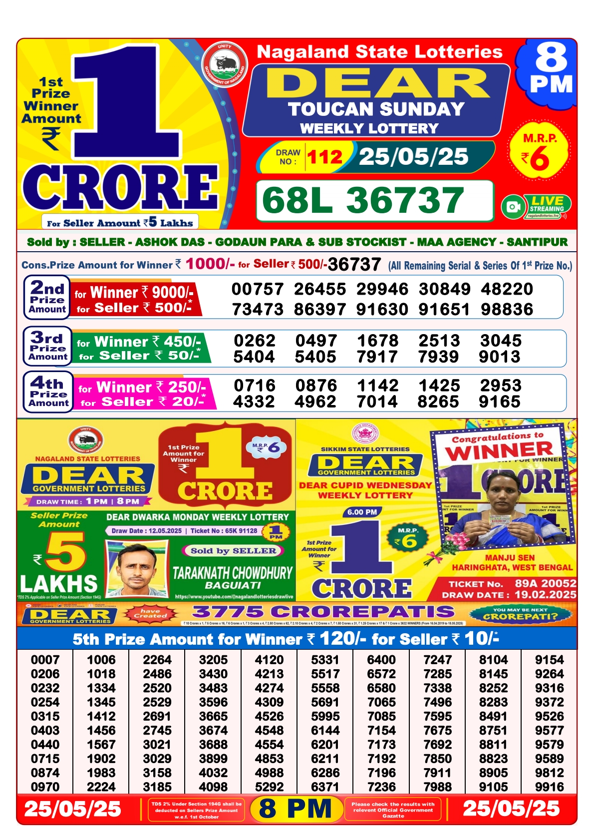 डिअर लाटरी का रात 8 बजे का रिज़ल्ट दिनांक 25.5.25