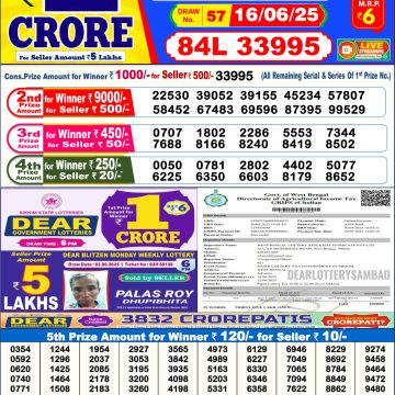 डिअर लाटरी का शाम 6 बजे का रिज़ल्ट दिनांक 30.09.25