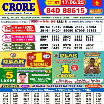 Nagaland State Lotteries was established in the year 1972 under the supervision of the Finance Department to generate a dependable source of revenue for the State Government. Nagaland State Lottery is held every day of the week at three different times of the day, Morning, Day, and Evening. Every day, the lottery is held under a different name with some difference in the prize money with the top prize worth ₹1 Crore (including Super Prize amount). The daily lotteries hosted by Nagaland State include Dear Morning Lottery, Dear Day Lottery, and Dear Evening Lottery which costs 6 Rupees for each ticket.