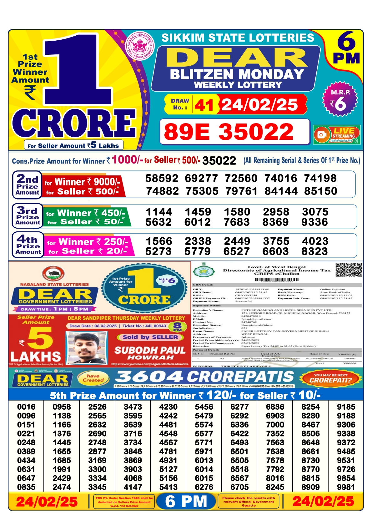 Nagaland State Lotteries was established in the year 1972 under the supervision of the Finance Department to generate a dependable source of revenue for the State Government. Nagaland State Lottery is held every day of the week at three different times of the day, Morning, Day, and Evening. Every day, the lottery is held under a different name with some difference in the prize money with the top prize worth ₹1 Crore (including Super Prize amount). The daily lotteries hosted by Nagaland State include Dear Morning Lottery, Dear Day Lottery, and Dear Evening Lottery which costs 6 Rupees for each ticket.