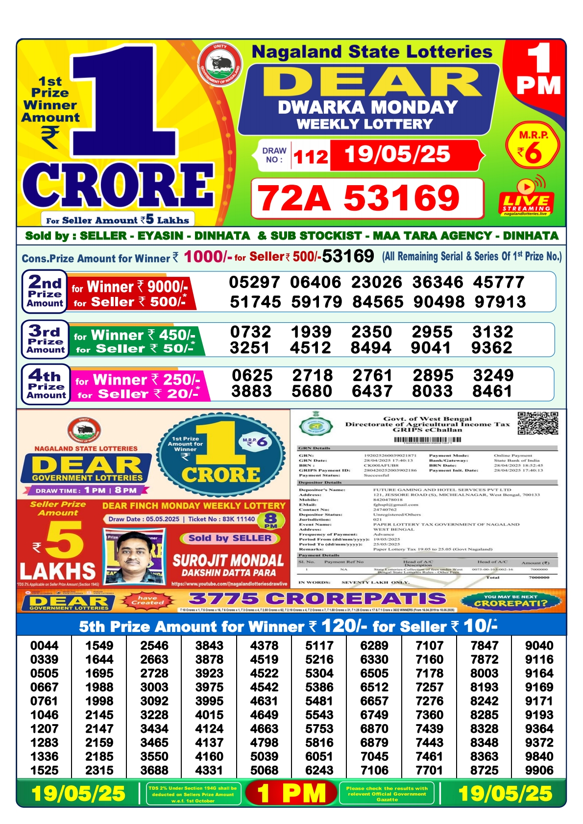 डिअर लाटरी का 1 बजे का रिज़ल्ट दिनांक 04.12.25