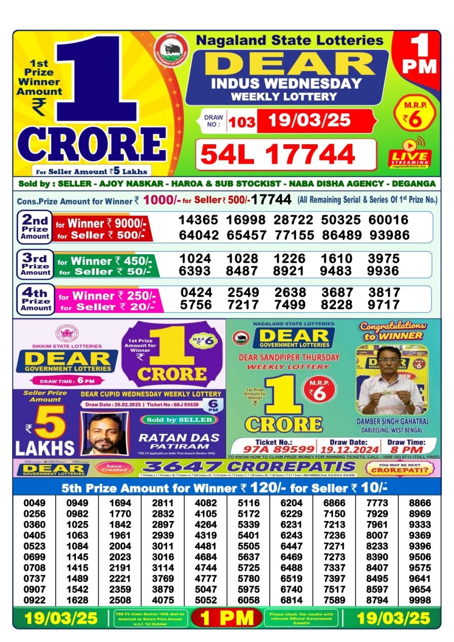 Nagaland State Lotteries was established in the year 1972 under the supervision of the Finance Department to generate a dependable source of revenue for the State Government. Nagaland State Lottery is held every day of the week at three different times of the day, Morning, Day, and Evening. Every day, the lottery is held under a different name with some difference in the prize money with the top prize worth ₹1 Crore (including Super Prize amount). The daily lotteries hosted by Nagaland State include Dear Morning Lottery, Dear Day Lottery, and Dear Evening Lottery which costs 6 Rupees for each ticket.