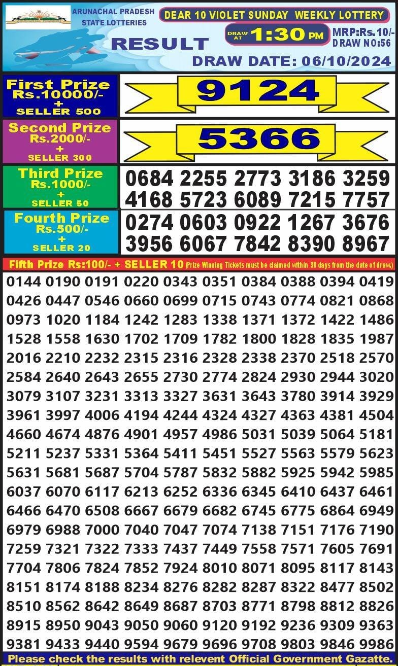 डिअर 10 लाटरी का दोपहर 1:30 बजे का रिज़ल्ट दिनांक 20.7.25