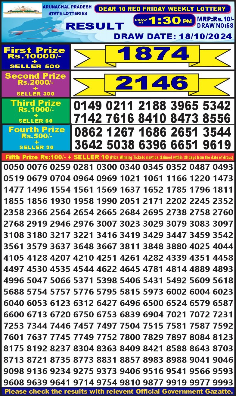 Nagaland State Lotteries was established in the year 1972 under the supervision of the Finance Department to generate a dependable source of revenue for the State Government. Nagaland State Lottery is held every day of the week at three different times of the day, Morning, Day, and Evening. Every day, the lottery is held under a different name with some difference in the prize money with the top prize worth ₹1 Crore (including Super Prize amount). The daily lotteries hosted by Nagaland State include Dear Morning Lottery, Dear Day Lottery, and Dear Evening Lottery which costs 6 Rupees for each ticket.