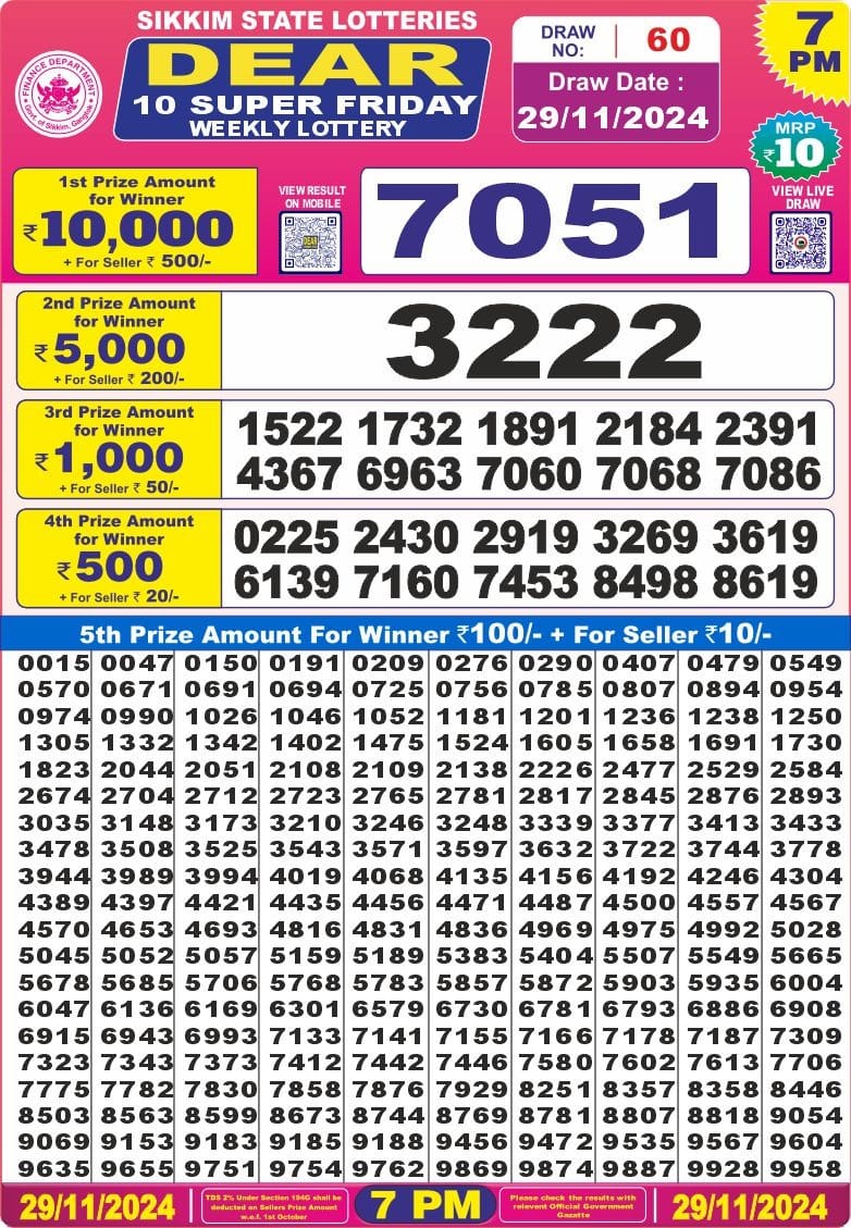 डिअर 10 लाटरी का शाम 7 बजे का रिज़ल्ट दिनांक 29.7.25