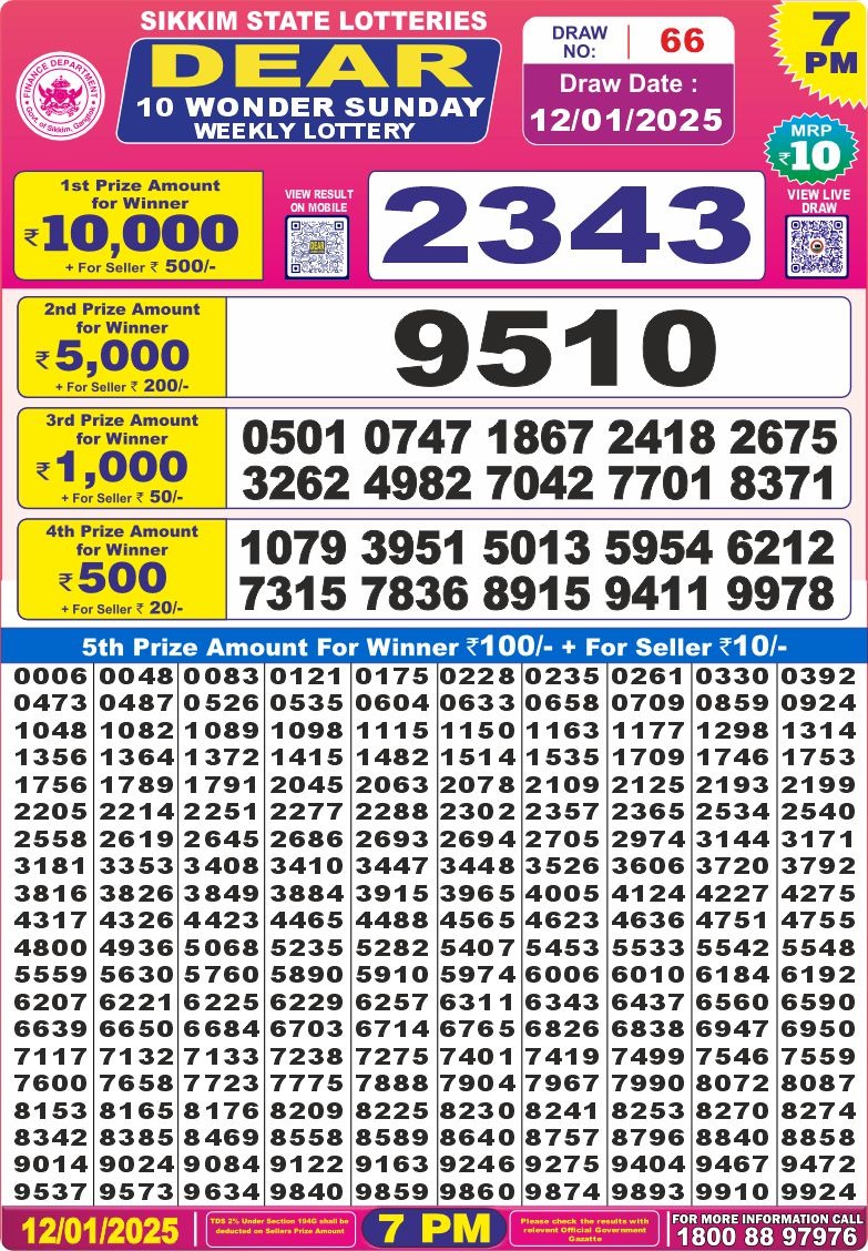 Nagaland State Lotteries was established in the year 1972 under the supervision of the Finance Department to generate a dependable source of revenue for the State Government. Nagaland State Lottery is held every day of the week at three different times of the day, Morning, Day, and Evening. Every day, the lottery is held under a different name with some difference in the prize money with the top prize worth ₹1 Crore (including Super Prize amount). The daily lotteries hosted by Nagaland State include Dear Morning Lottery, Dear Day Lottery, and Dear Evening Lottery which costs 6 Rupees for each ticket.