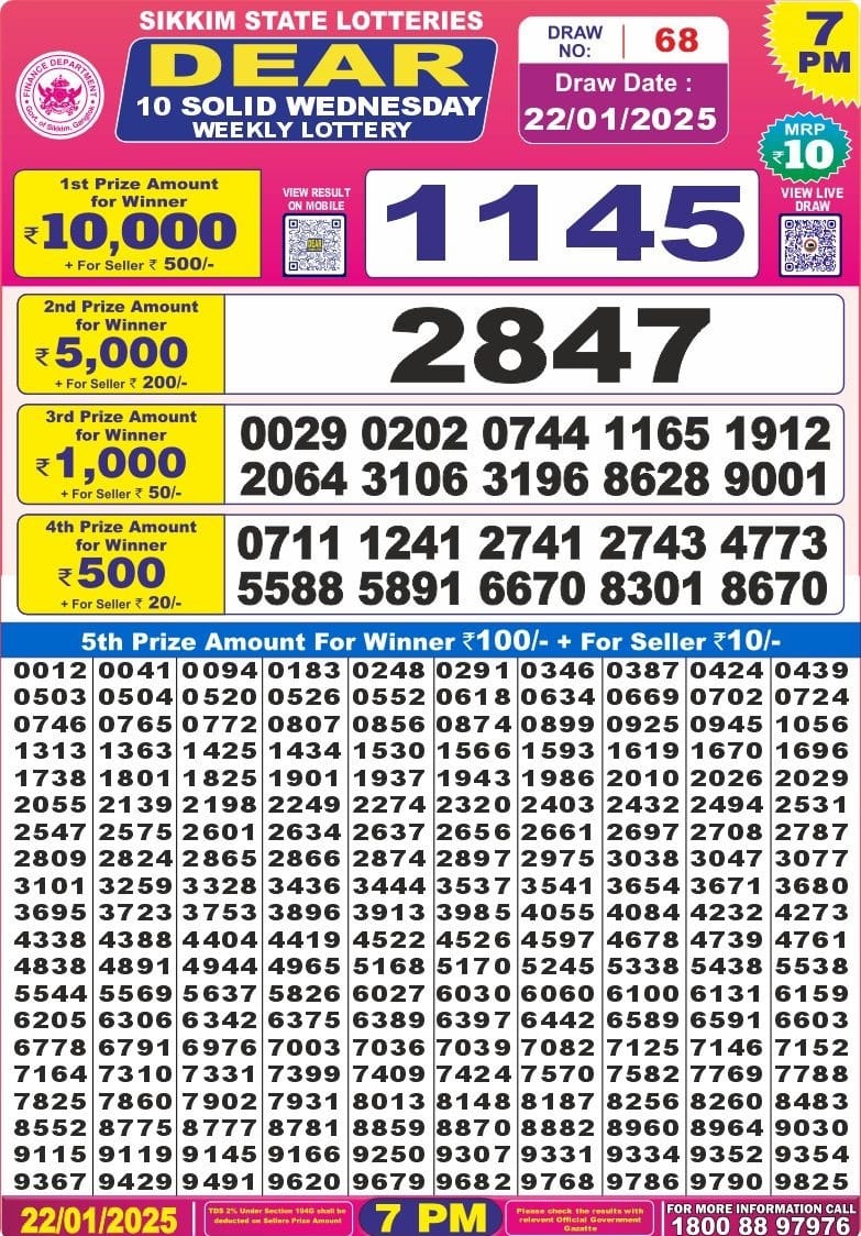 डिअर 10 लाटरी का शाम 7 बजे का रिज़ल्ट दिनांक 10.9.25
