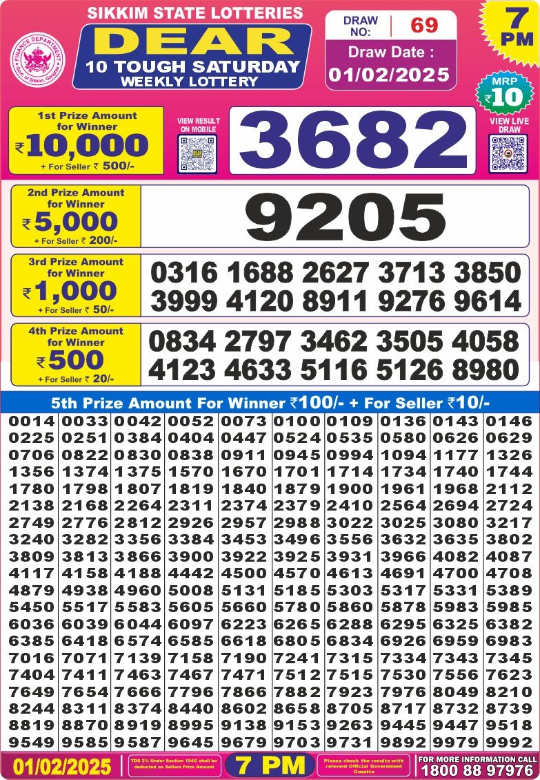 डिअर 10 लाटरी का शाम 7 बजे का रिज़ल्ट दिनांक 19.9.25