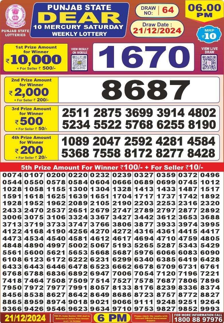 Nagaland State Lotteries was established in the year 1972 under the supervision of the Finance Department to generate a dependable source of revenue for the State Government. Nagaland State Lottery is held every day of the week at three different times of the day, Morning, Day, and Evening. Every day, the lottery is held under a different name with some difference in the prize money with the top prize worth ₹1 Crore (including Super Prize amount). The daily lotteries hosted by Nagaland State include Dear Morning Lottery, Dear Day Lottery, and Dear Evening Lottery which costs 6 Rupees for each ticket.