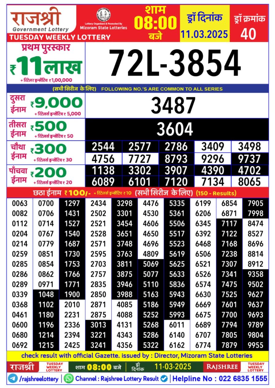 राजश्री लाटरी का रात 8 बजे का रिज़ल्ट दिनांक 27.10.25