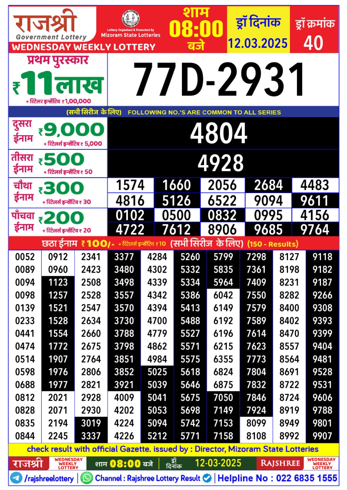 राजश्री लाटरी का रात 8 बजे का रिज़ल्ट दिनांक 28.10.25