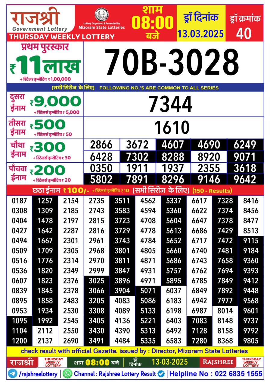 राजश्री लाटरी का रात 8 बजे का रिज़ल्ट दिनांक 29.10.25