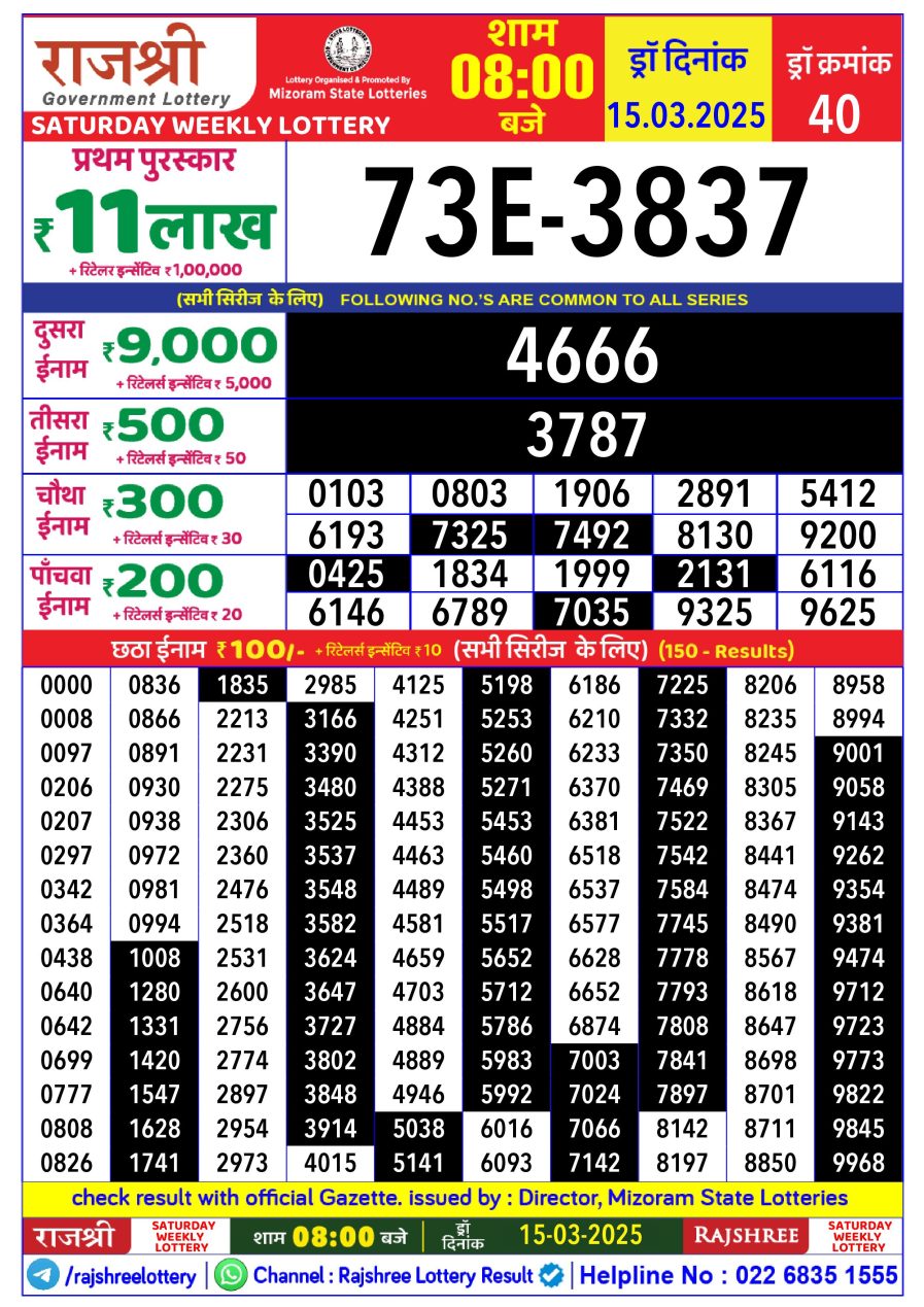 राजश्री लाटरी का रात 8 बजे का रिज़ल्ट दिनांक 31.10.25