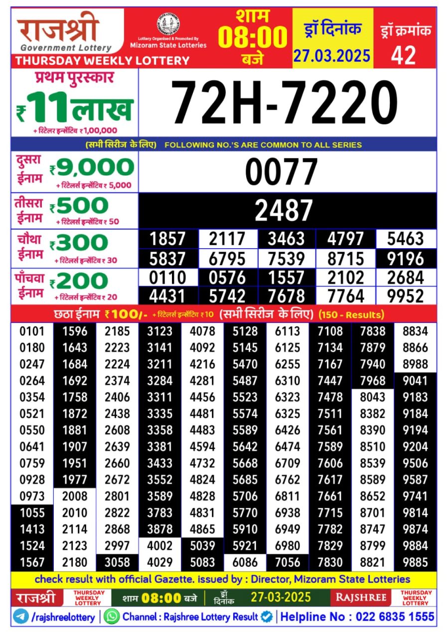 राजश्री लाटरी का रात 8 बजे का रिज़ल्ट दिनांक 12.11.25