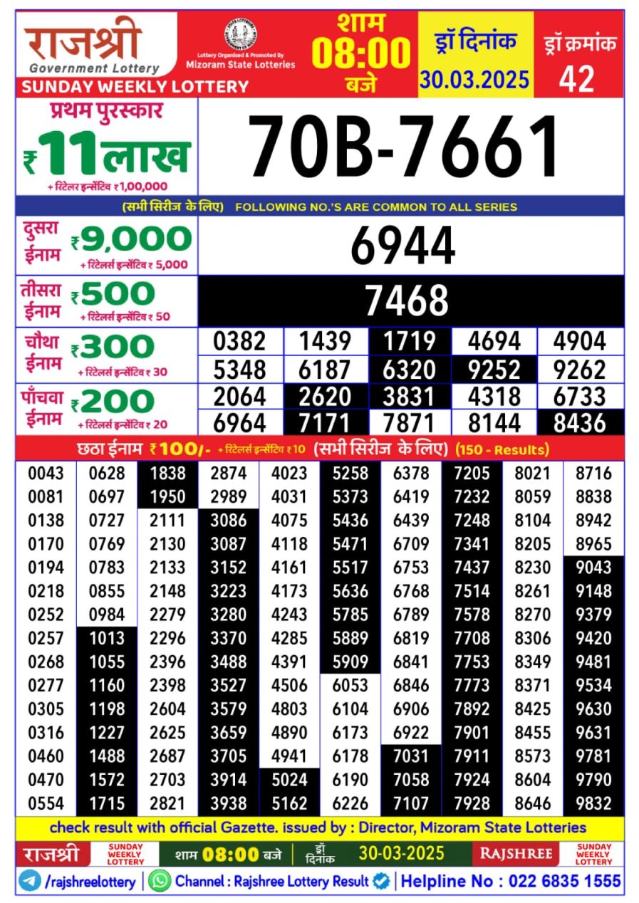 राजश्री लाटरी का रात 8 बजे का रिज़ल्ट दिनांक 15.11.25