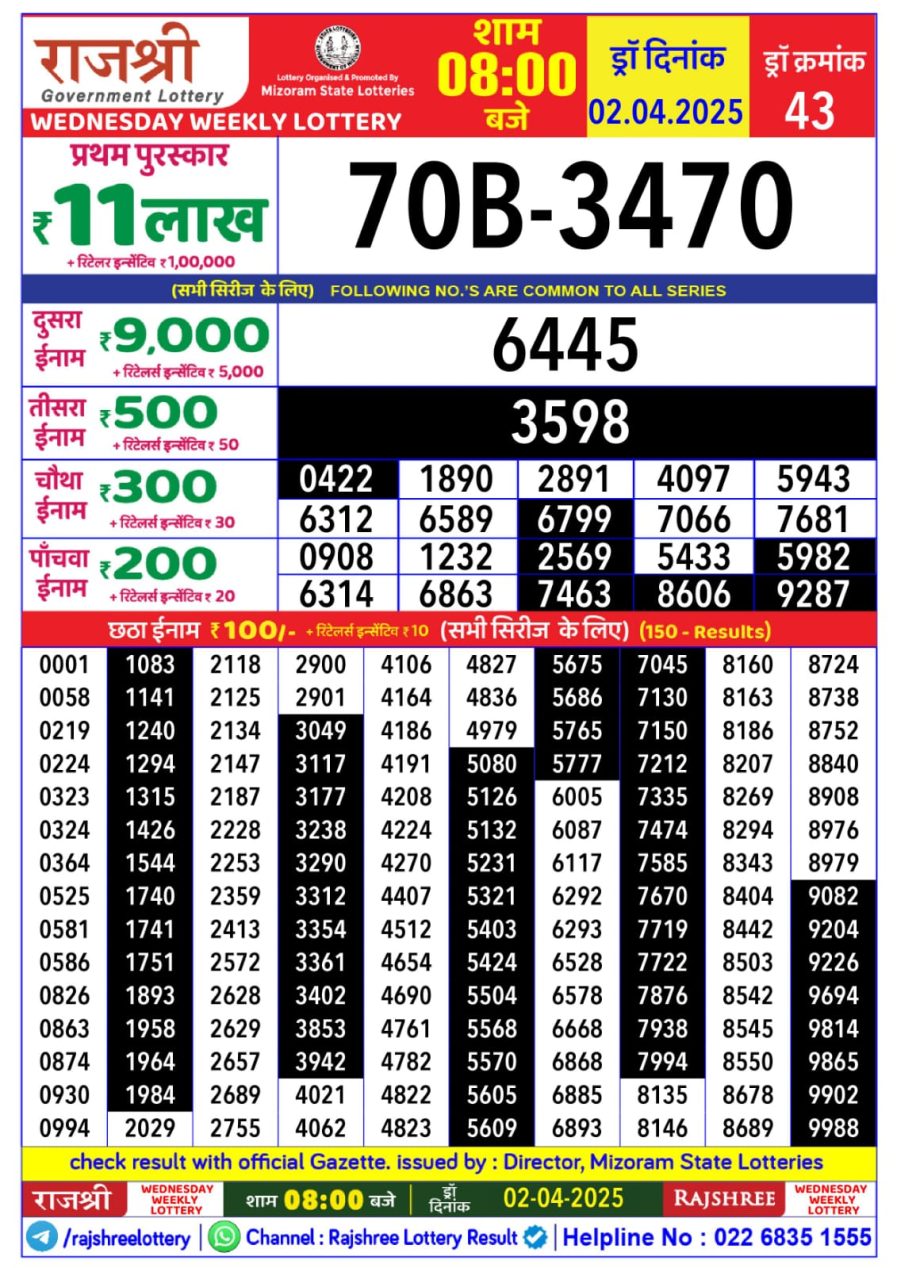 राजश्री लाटरी का रात 8 बजे का रिज़ल्ट दिनांक 18.11.25